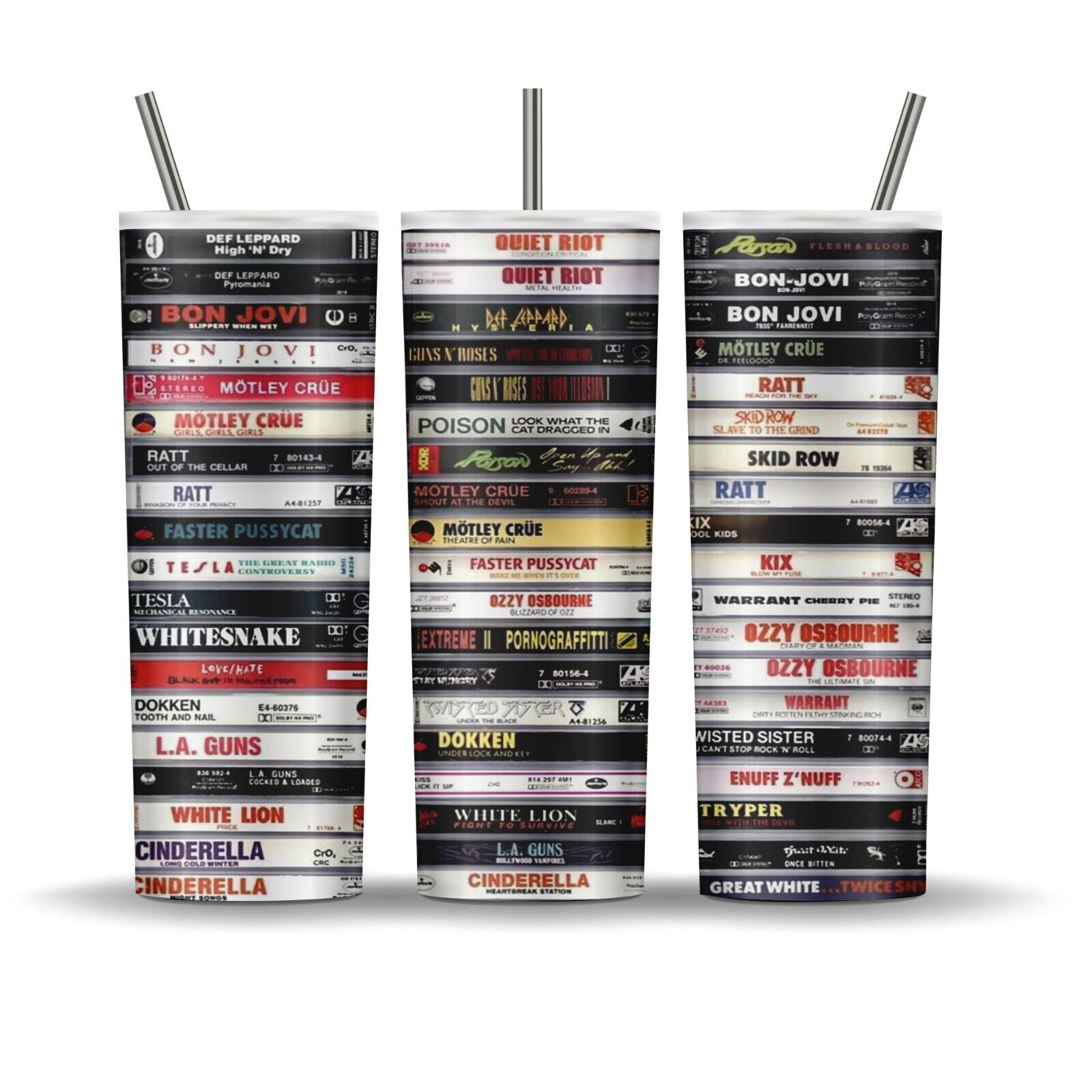 Cinderella, White Lion, Skid Row, Bon Jovi, Whitesnake, Def Leppard, Ozzy Osbourne, Kix, Ratt, Poison, Enuff Z'Nuff, Stryper, Warrant, Motley Crue, LA Guns, Tesla and more are represented