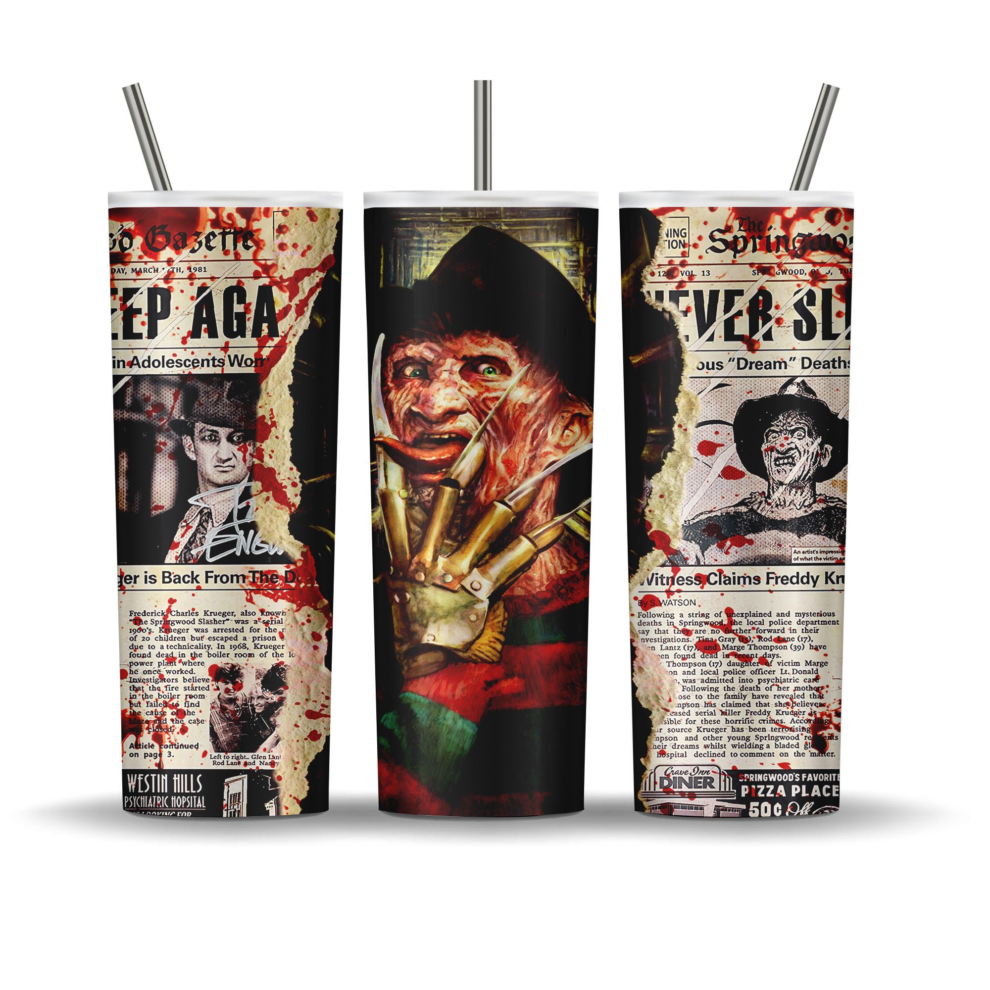 Freddy Krueger Nightmare on Elm Street Newspaper 20 oz tumbler