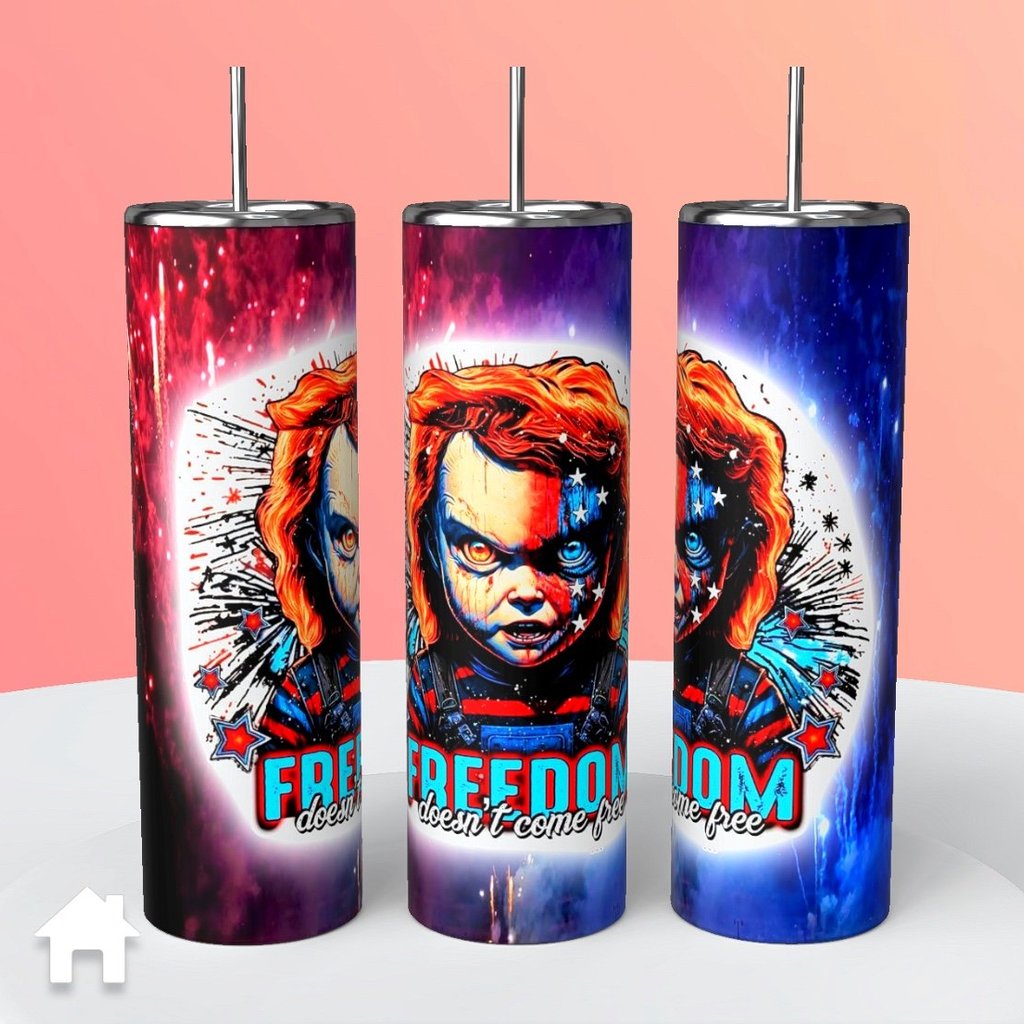 Child's Play Chucky "Freedom Isn't Free" 4th of July Independence Day Tumbler